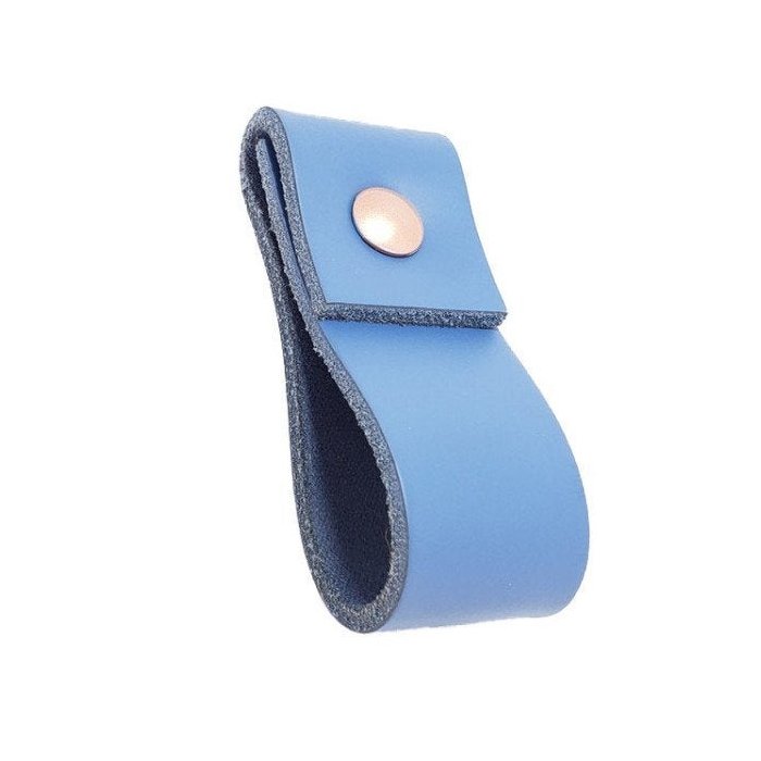 02 Puxadores Doba Parafuso - Couro Legítimo Azul:Rose Gold