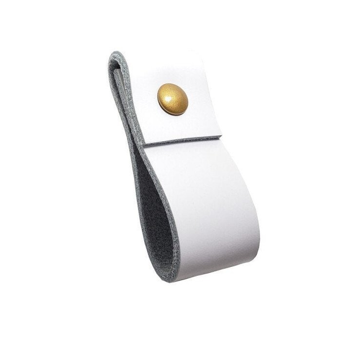 02 Puxadores Doba Parafuso - Couro Legítimo Branco:Dourado