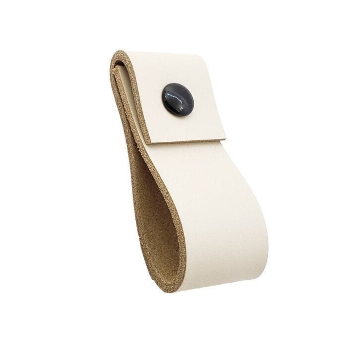 02 Puxadores Doba Parafuso - Couro Legítimo Creme:Preto