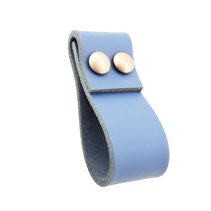 02 Puxadores DobaTwo Parafuso - Couro Legítimo Azul:Rose Gold