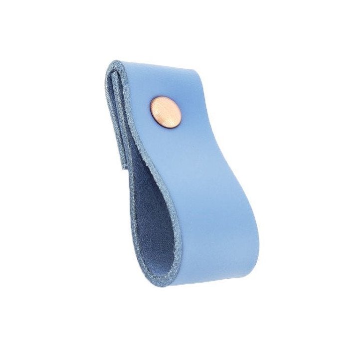 02 Puxadores Dobi Parafuso - Couro Legítimo Azul:Cobre