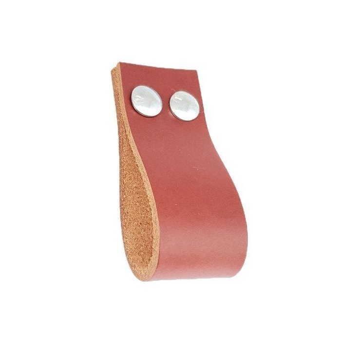 02 Puxadores DokoTwo Parafuso - Couro Legítimo Mogno:Prata