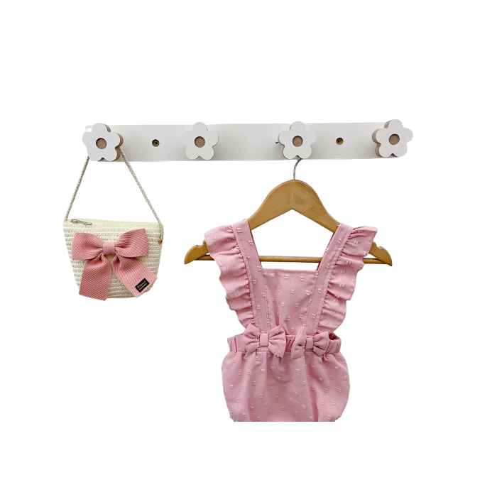 1 Cabideiro Parede Infantil Pendurador Roupas Jardim Flor:branco