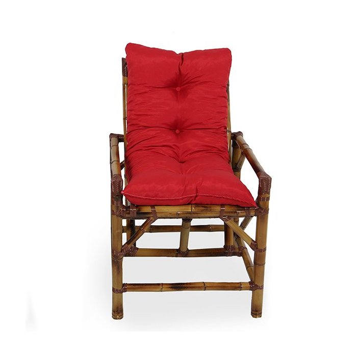1 Cadeira de Bambu e Vime com Almofada Vermelha