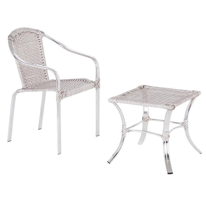 1 Cadeira De Area Em Aluminio E Fibra Sintetica Tóquio E 1 Mesa De Centro, Jardim - Marmore