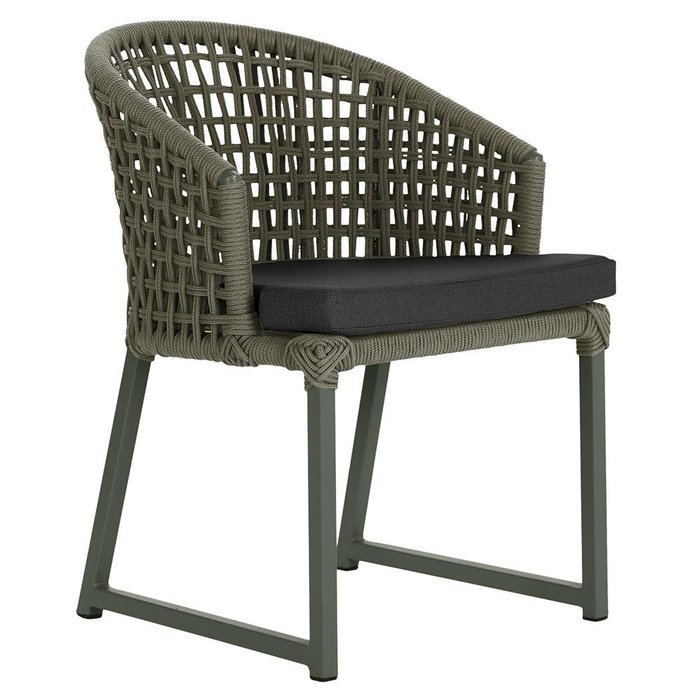 1 Cadeira Noronha Aluminio Micro Pintura Verde, Tr. Telinha Corda Nautica Verde Militar, Estofado -