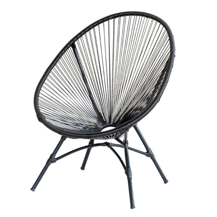1 Cadeira Poltrona Oval Em Corda Sintética Kinder Acapulco Preta, Para Sacada, Varanda, Jardim ALUMIART DECOR