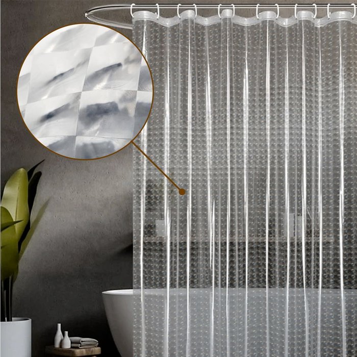1 Cortina Box Banheiro 3d Antimofo Ganchos 180x180 Pev M02