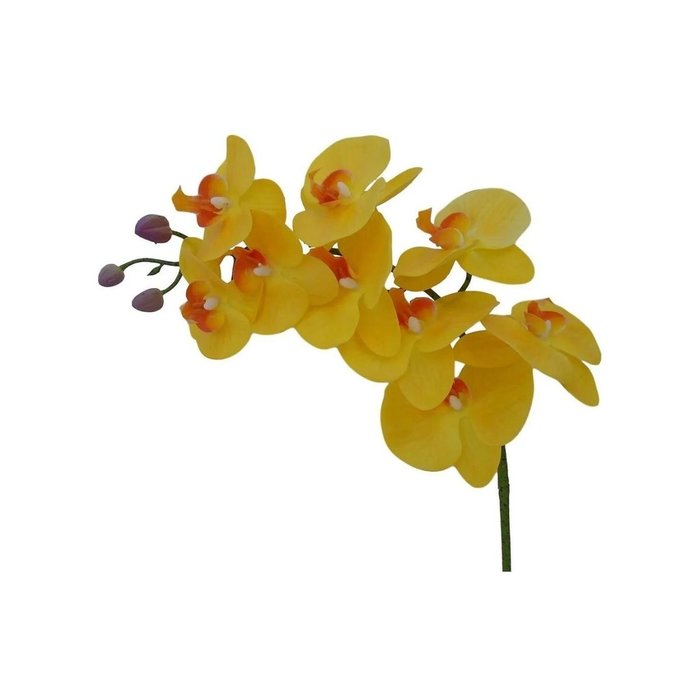 Embalagem: 01 galho de orquídea artificial amarelo toque real silicone - Medidas da haste 10 x 10 x 94cm com 09 flores o galho.