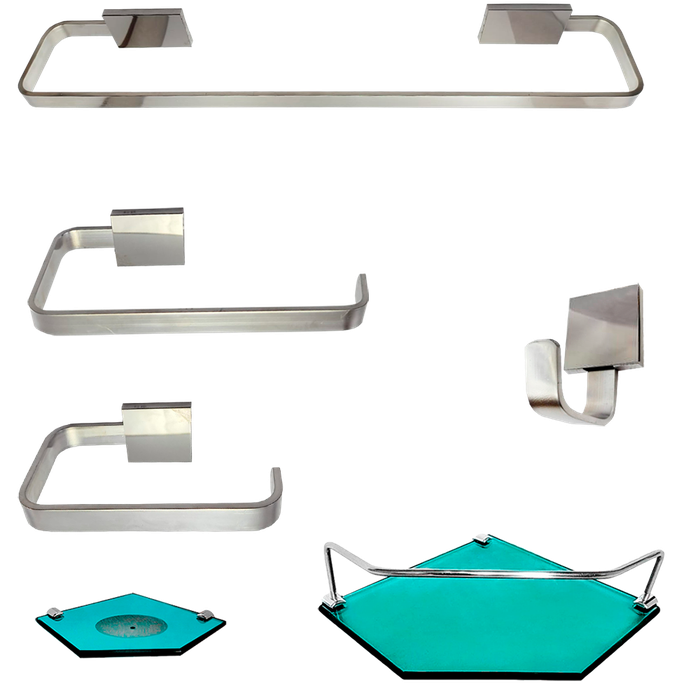 1 Kit Para Banheiro Luxo Cairo Vidro Sextavado Verde
