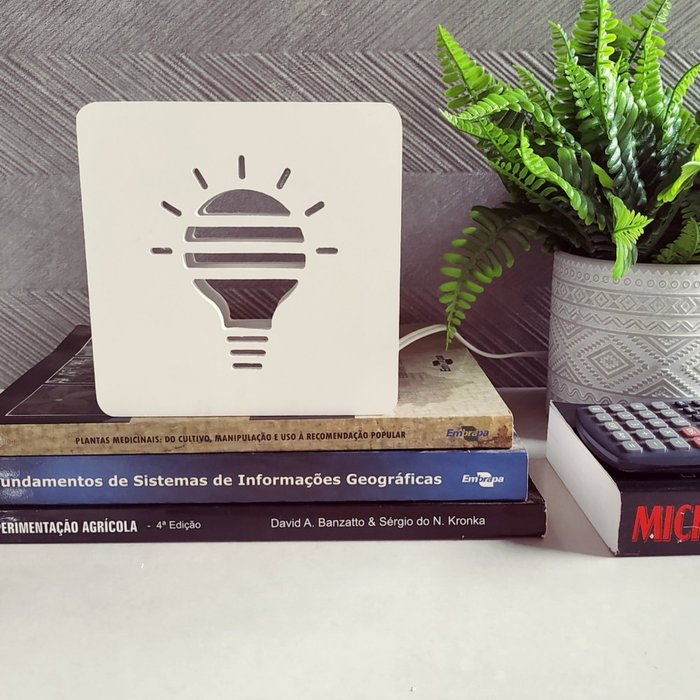 1 Luminária LED Mesa Desenhos Decorativa MDF Branco 14cm:Lâmpada