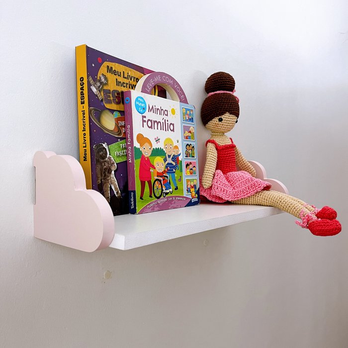 1 Prateleira Colorida Decoração Infantil Nuvem 60x15cm:rosa