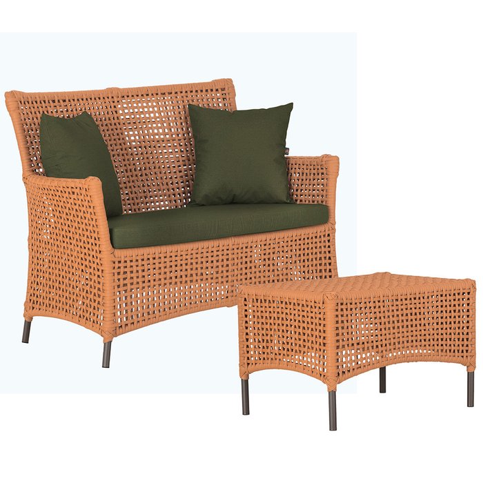 1 Sofá Área e Mesa Igapó Alumínio Pintura Marrom Corda Náutica Estofado Impermeável Almofada 13 Tram Terra Cota