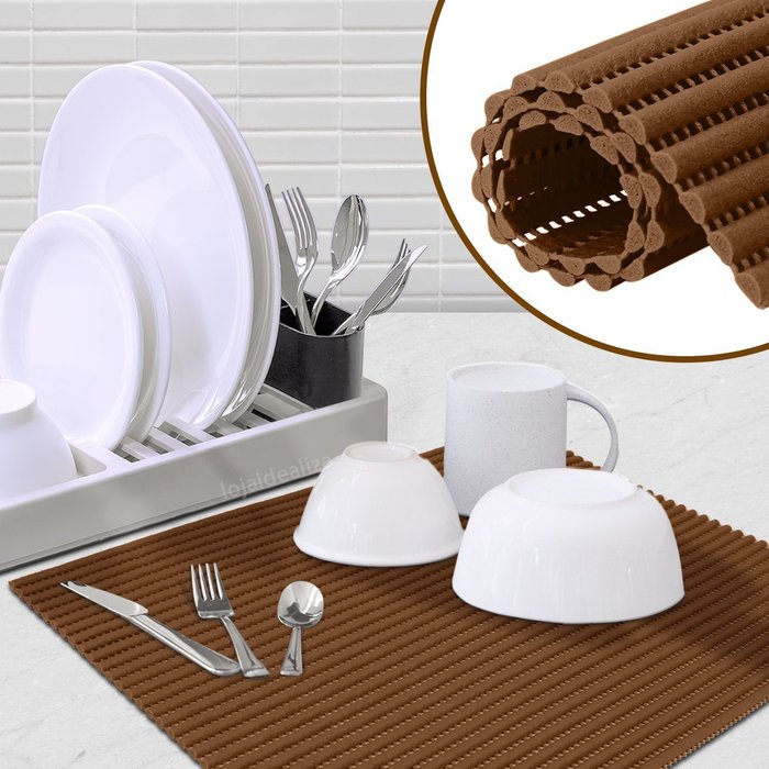 1 Tapete Escorredor de Louça Pia Pvc Antimofo 43x33cm M3 Marrom