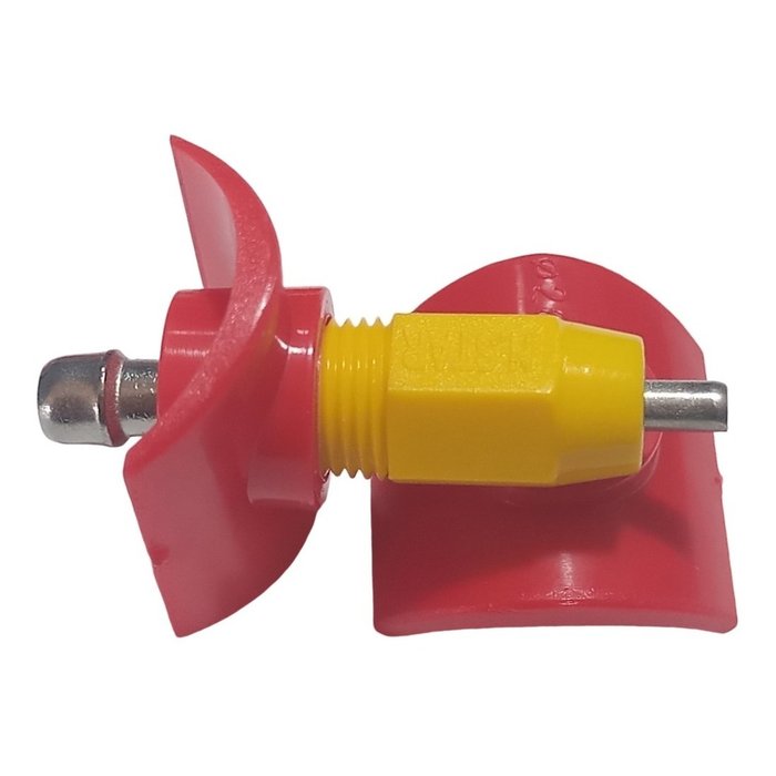 niple com parte externa em pvc amarelo ou vermelho e parte interna em aço inox.
