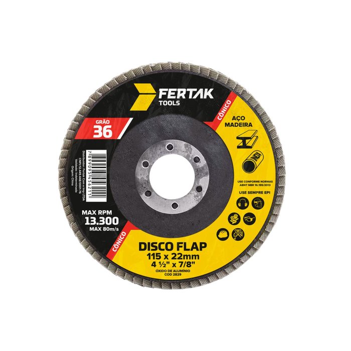 - Disco flap de alta qualidade, fabricado com materiais resistentes e duráveis, garantindo maior vida útil e desempenho eficiente.