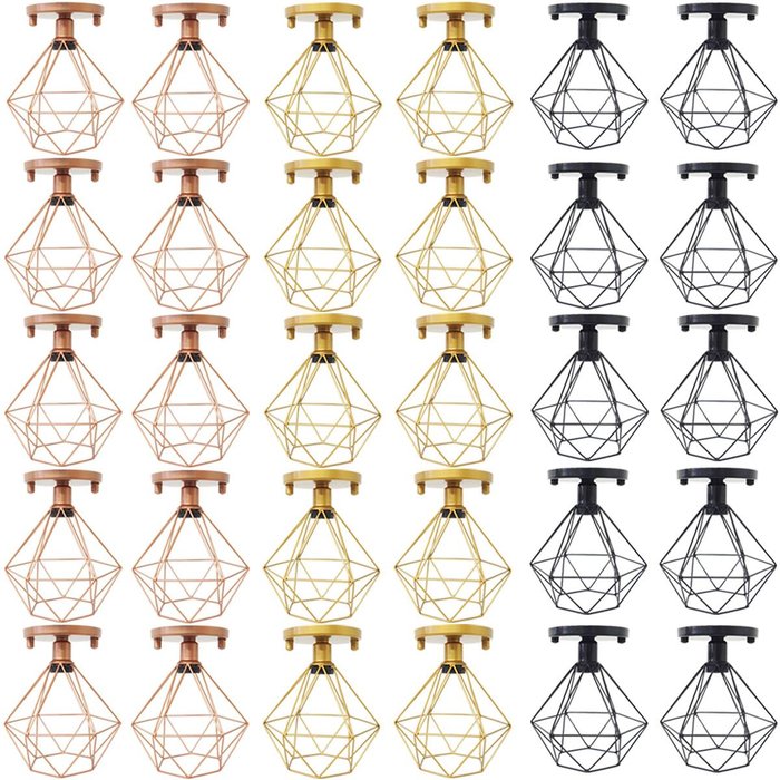 10 Lustres Teto Plafon Industrial Aramado Diamante Retrô Luminária Sobrepor Vintage Agp Ilumini Cobre Rose Gold, Dourado ou Preto