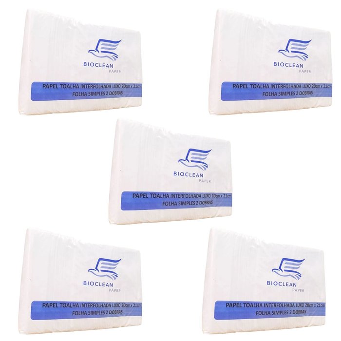 10 Pacotes Papel Toalha Interfolhado 20 x 21 cm 1000 Folhas Bioclean Paper Luxo Branco - Kit 10 Mil