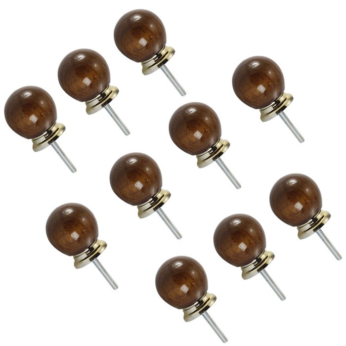 10 Puxador Botão Bola Madeira e Dourado em Abs Gaveta Móveis Imbuia