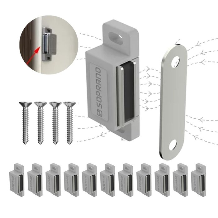 Kit com 10 fechos magnético (imã) com parafusos para instalação.