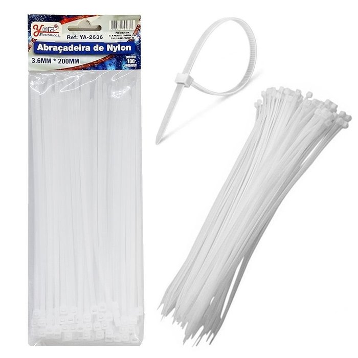 100 Enforca Gato Fita Lacre de Nylon 3.6x200mm Cinta Plástica Hellerman 20cm Branco Branco