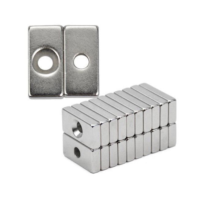 10pcs. Imã de Neodimio Retangular 20x10x4mm com furo - N35