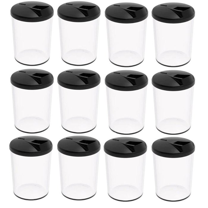 Aproveite o kit de 12 farinheiras com tampa da Crippa! Cada unidade possui 400ml de capacidade e é perfeita para armazenar farofa, temperos, grãos e outros alimentos. Com tampa hermética, suas farinhas e temperos ficam bem conservados e frescos por mais tempo. Fabricadas em plástico de alta qualidade na cor preta, essas farinheiras trazem praticidade e sofisticação para a sua cozinha, com design moderno e funcional.