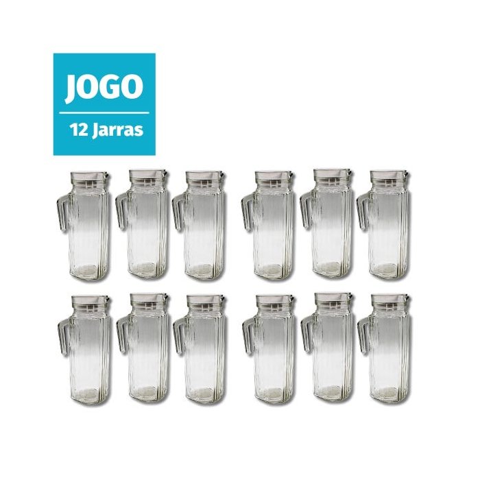 12 Jarras Suco de Vidro com Tampa Suco Água Cha Geladeira 1L
