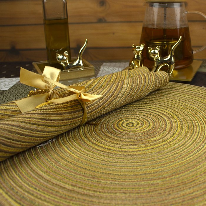 12 Jogo Americano Redondo Mesa Posta Sousplat Luxo Pvc Pmam Amarelo Mescla