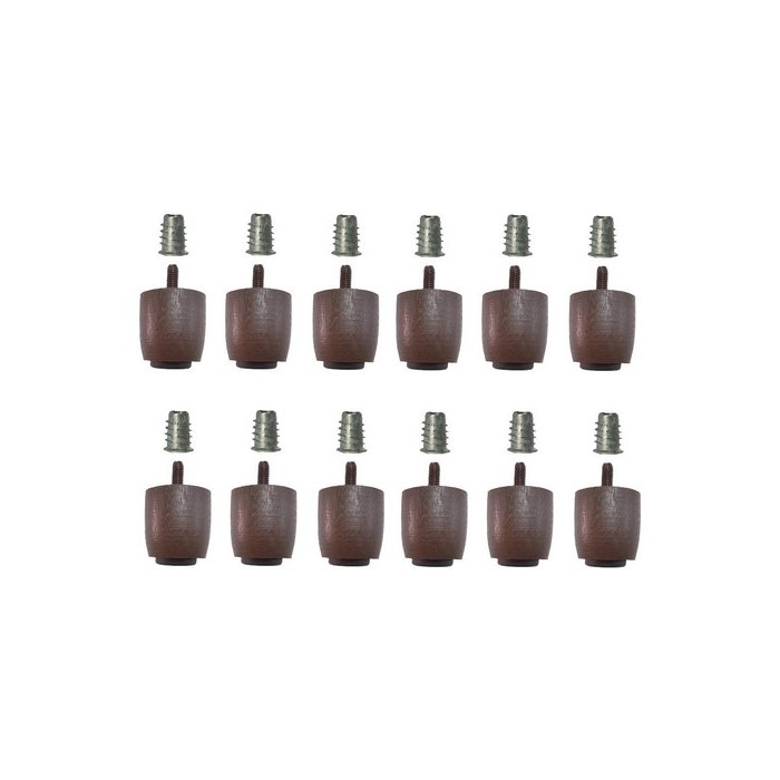 PÉ PARA CAMA BOX OU BAÚ CASAL QUEEN OU KING SIZE Ideal para deixar o móvel baixo. Modelo: 4 CM JRCor: MARROMMaterial/Composição: MADEIRA MACIÇARosca: 5/16 (rosca padrão de todas as camas box e baú de fabricação nacional) - rosqueie facilmente. Quantidade de pés nesse kit: 12 UNIDADES. Altura total, sem contar com o parafuso: 4 CM Diâmetro do corpo: 3,5 CMBase: sapata plástica, não acompanham os feltros (se desejar os feltros, temos á venda)Acompanha buchas ou porcas: SIM, BUCHAS AMERICANAS. Na Zoe & Charis Decorações temos: Pés para cama box (casal, solteiro, queen, king size, viuvão e etc), pés para sofás, gabinetes, balcões, armários, aparadores e racks, rodinhas e rodízios, puxadores, pistões, cantoneiras, acessórios para móveis em geral.