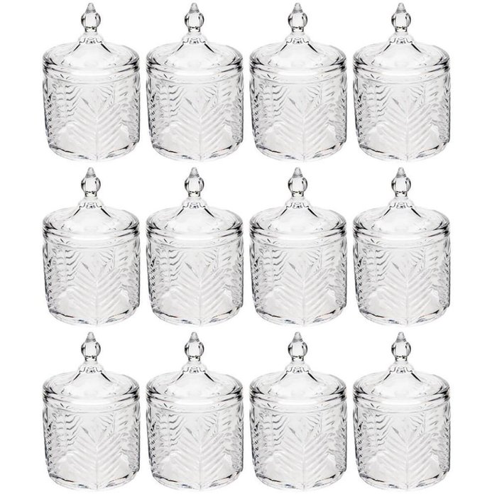 12 Potiches com Tampa Cristal Lembrancinha Bomboniere Baleiro Lyor Buffet