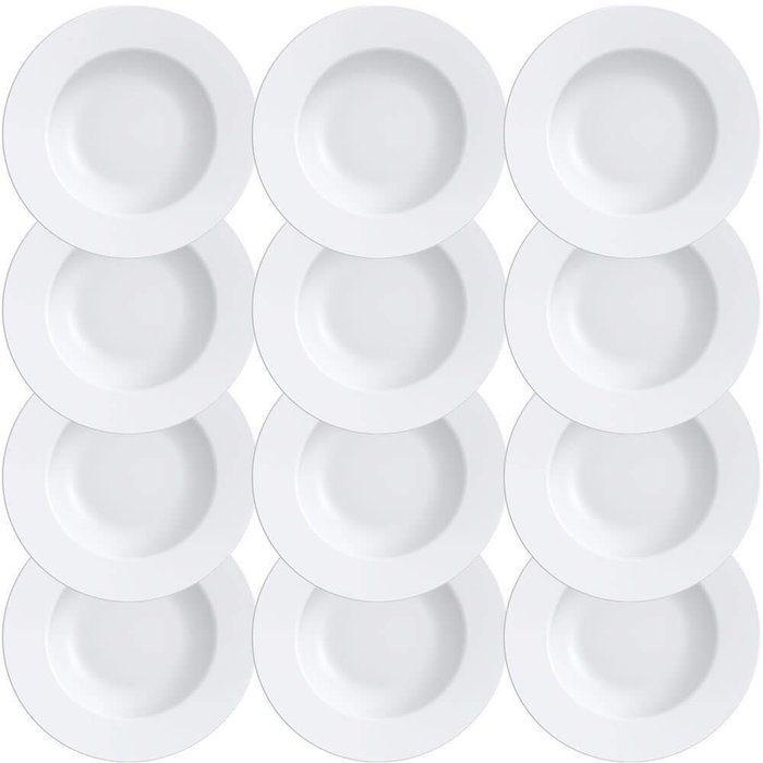 12 PRATOS RASO TRAMONTINA ELENA EM PORCELANA BRANCA 27 CM CÓD. 96600002