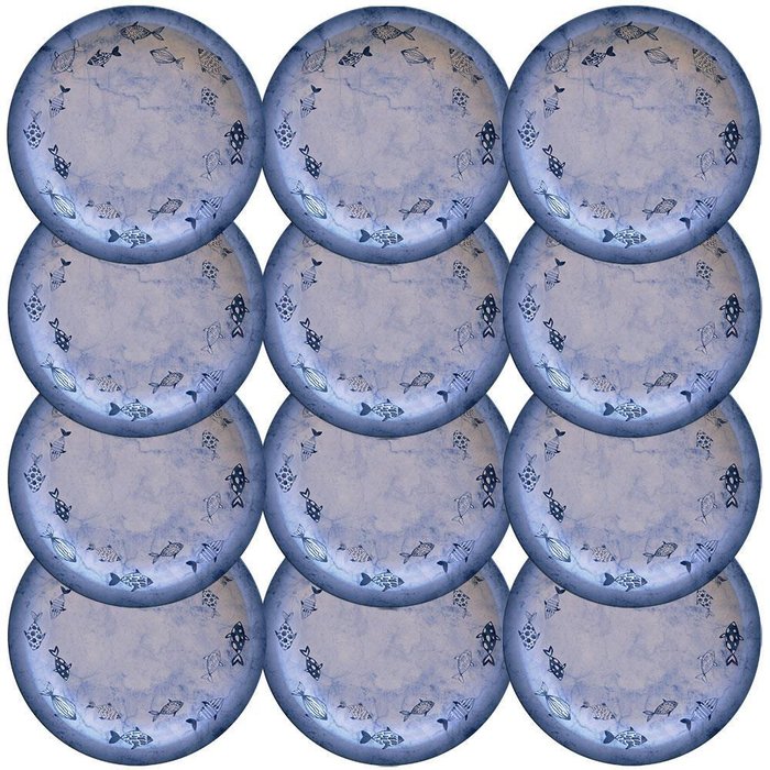 12 Pratos Raso Tramontina Peixes Azul em Porcelana Decorada 28 Cm 96980000 Azul