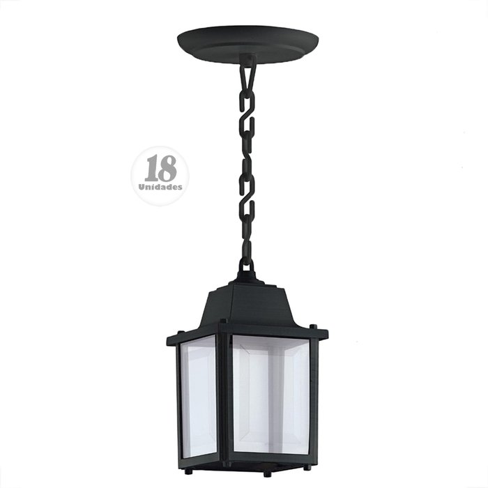 18 Luminária Pendente Teto Externo Vintage Colonial Preto Sacada Beirado Alz14 preto