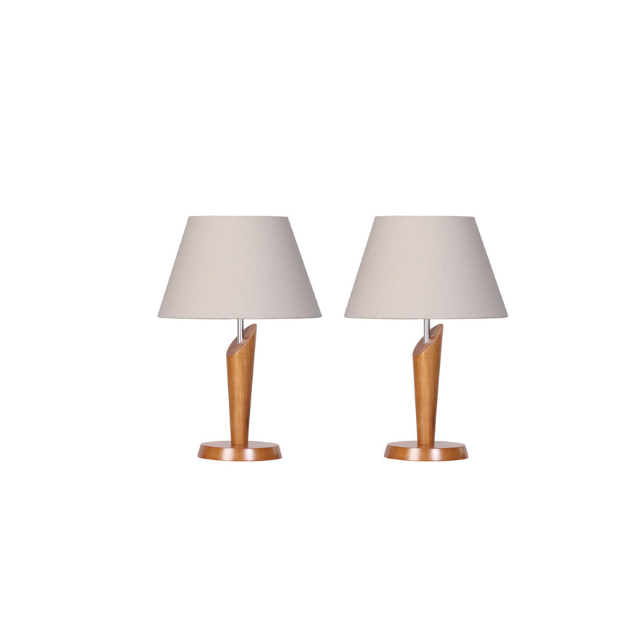 2 Abajur Quarto Capri Madeira Cor Mel Cúpula Tradicional Algodão Mel
