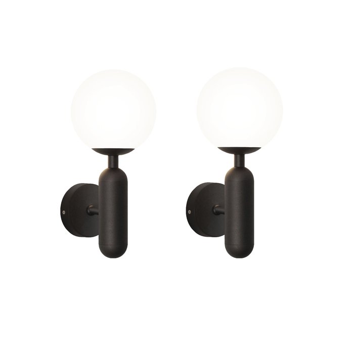 2 Arandela Ball Globo Branco De Vidro Preto Fosco Lavabo Sala Lup30 preto