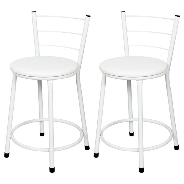 2 Banquetas Baixa para Cozinha Epoxi Branca:branco Branco