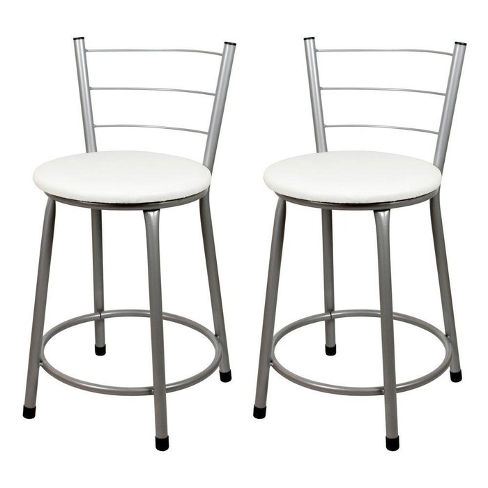 2 Banquetas Baixa Para Cozinha Epoxi Cinza Cor:branco