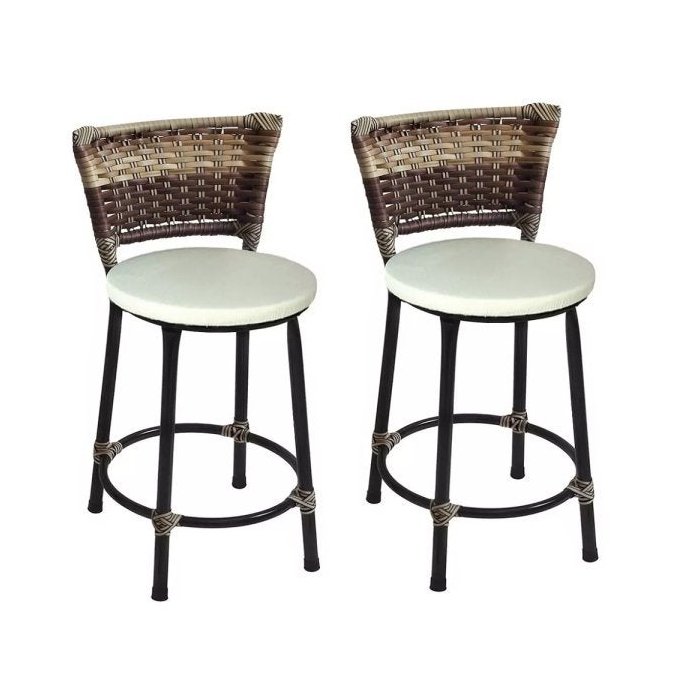 2 Banquetas Baixa Preta com Junco Capuccino e Assento Branco