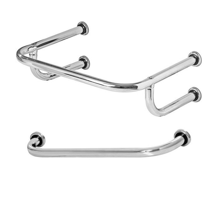 Conteúdo da embalagem - 6 Barras de apoio para banheiro de 80Cm e 2 Barras de apoio para lavatório 40x50Cm.