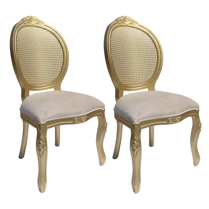 2 Cadeira Medalhão Madeira Entalhada com Tela Telinha Palhinha Poltrona Natural Provençal Indiana de dourado