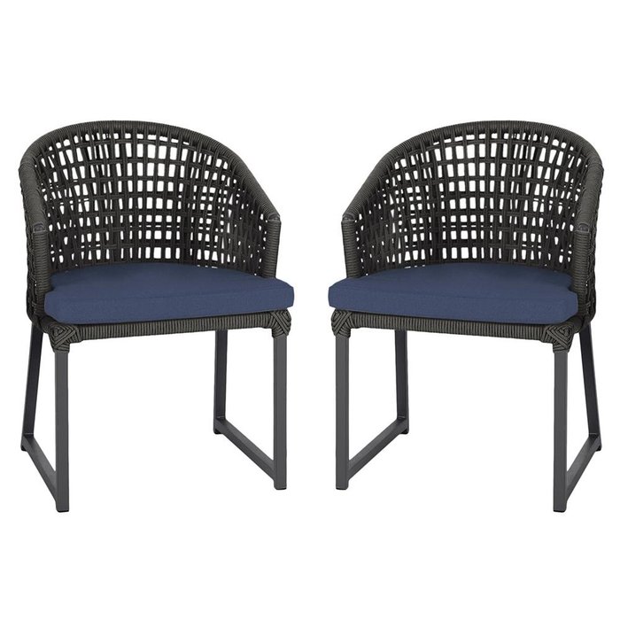 2 Cadeira Noronha Aluminio Micro Pintura Preta, Tr. Telinha Corda Nautica Preta, Estofado - Azul