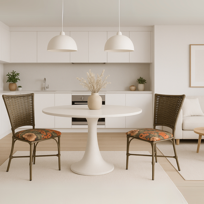 2 Cadeira Vivara Mesa Jantar Estofada Cozinha Fibra Sintética Areia Floral Laranja