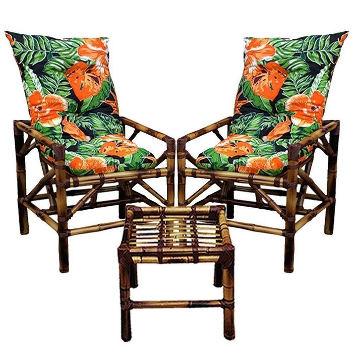 2 POLTRONAS DE BAMBU E MESA . . As poltronas e a mesa de cetro feitas artesanalmente em Bambu são ideais para decorar tanto áreas externas quanto áreas internas, com um designe sofisticado acompanha 2 almofadas extremamente confortáveis feitas de uma qualidade indescritível. Quando se trata de decorar um ambiente, é muito importante ter diversas opções de cores para transmitir sentimentos de alegria e felicidade, pensando nisso, nós trazemos para o mercado uma variedade de produtos totalmente artesanais com fabricação própria que vão melhorar seu ambiente tornando mais aconchegante e tranquilo. Além de serem charmosos também são excelentes para proteger o meio-ambiente do desmatamento de árvores que poderiam ser derrubadas em seu lugar. Além disso, o material é naturalmente forte e rígido, fatores que o tornam bastante duradouro e resistente. Nossa empresa valoriza o ser humano e o ambiente de cada lar, e vêm contribuindo para a realização pessoal e familiar de nossos clientes. Nossa MISSÃO é ser referência regional na produção, venda e assessoria na área de Decoração com ótimo custo benefício. . . OS MÓVEIS DE BAMBU SÃO IDEAIS PARA: . - Jardins - Varandas e Sacadas - Sala de Espera - Comércios - Sítios - Áreas de Piscinas - Salão de Jogos - Sacadas - Área de Lazer - E muito mais... . . CARACTERÍSTICAS GERAIS: . . POLTRONA - Altura: 90cm - Largura: 55cm - Comprimento: 70cm - Quantidade: 2 - Produto em bambu tratado e envernizado - Material antibacteriano natural e sustentável - Acabamento em fibra sintética - Fabricação totalmente artesanal - Garantia de 90 DIAS contra defeitos de fábrica . . MESA: - Altura: 35cm - Largura: 45cm - Comprimento: 45cm - Quantidade: 1 - Produto em bambu tratado e envernizado - Material antibacteriano natural e sustentável - Acabamento em fibra sintética - Fabricação totalmente artesanal . . ALMOFADA: - Altura: 95cm - Largura: 45cm - Comprimento: 15cm - Quantidade: 2 - Almofadas com tecido Gorgurinho e recheadas de flocos de espuma. - Fabricação totalmente artesanal. . . AS MEDIDAS PODEM VARIAR ATÈ 3CM POR SE TRATAR DE UMA PRODUTO ARTESANAL . . VANTAGENS DE ADIQUIRIR NOSSO PRODUTO: . - Fácil Limpeza. - Alta Durabilidade. - Móvel Leve e de Fácil locomoção. - Totalmente Confortável com Almofadas extremamente macias. - Suporta até 150 kl. - Bambu Totalmente Revestido de Verniz que Aumenta a Durabilidade. - Agilidade no atendimento e na entrega. - Empresa comprometida e transparente com todos seus clientes. - Mais de 85 Opções de Estampas em Almofadas. . . PERGUNTAS FREQUENTES: . . 1- AS ALMOFADAS SÃO IMPERMEAVEIS? Resposta: Não, nossas almofadas são de tecido Gorgurinho! Apesar de ser resistente e durável, não são impermeáveis. . 2- TERIA OUTRA MEDIDA? Resposta: Não, no momento trabalhamos apenas com a medida anunciada! . 3- ENTREGAM EM APARTAMENTOS? Resposta: SIM, somente na portaria ou setor de carga e descarga do condomínio, a norma da transportadora não autoriza entregas em andares superiores ou em áreas rurais. Agora que já nos conhece um pouco melhor é só escolher a cor que mais combina com o seu lar e deixe o restante com a nossa equipe de vendas. . 4- SÃO RESISTENTES A SOL E CHUVA? Resposta: Sim, as POLTRONAS podem ficar expostas ao sol e a chuva sem problemas, porem isso pode diminuir a vida útil delas. Já a almofada por não ser impermeável não recomendamos deixar na chuva.