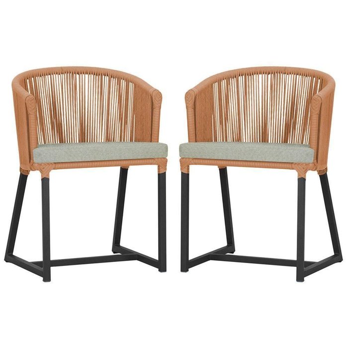 2 Cadeiras De Jantar Noronha Preta Corda Náutica E3 Trama Terra Cota