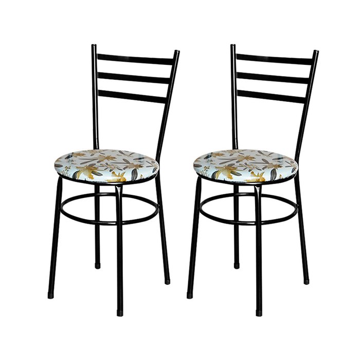 2 Cadeiras para Mesa Epoxi Preta Assento Floral:floral Orquídea