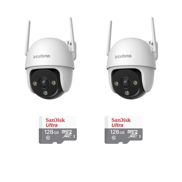 | Itens Inclusos | 02 Câmera Wifi Smart 360 IM7 S Full Color intelbras 02 Fonte de Energia Bivolt 02 Kit de Fixação 02 Guia de Instalação 02 Cartão de Memória 128GB Ultra SanDisk |