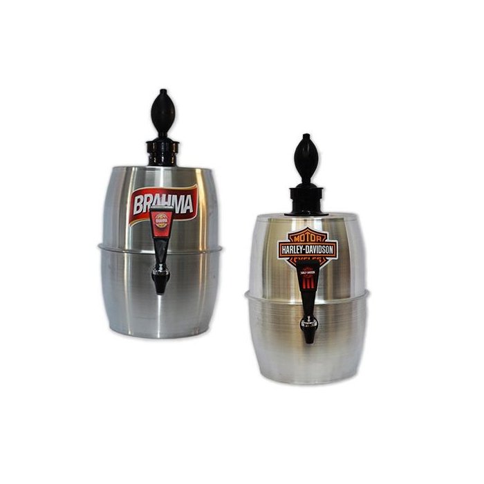 A Chopeira Portátil é moldada em alumínio polido de alto brilho, possui um design prático e moderno de barril de chopp, seu reservatório onde armazena-se os liquidos possui pintura alimentícia e sistema de refrigeração com gelo em cubos e/ou moidos. Não utiliza-se de rede eletrica, é de fácil manuseio e higienização, serve também para outros tipos de liquidos, tais como refrigerantes, sucos, água de coco, vinhos, chás, águas; exceto destilados. Esta chopeira possui isolação térmica em PS de alta densidade, alça na embalagem para transporte.