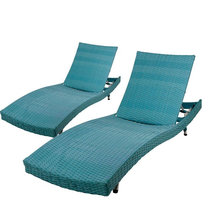 2 Espreguiçadeiras Bona Em Alumínio, Fibra Sintética Com 6 Regulagens Para Jardim, área De Piscina - Azul Turquesa