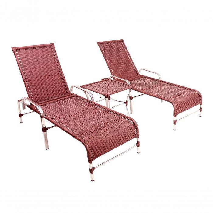 2 Espreguiçadeiras Esteira e 1 Mesa de Centro Garden Vinho Dark